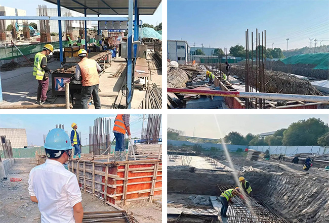 區(qū)環(huán)衛(wèi)基礎(chǔ)設(shè)施項(xiàng)目正處于基礎(chǔ)施工階段,項(xiàng)目現(xiàn)場,施工人員都戴著安全帽在各自的工作崗位上忙碌,忙著扎鋼筋、搭建模板、灌漿混凝土等,現(xiàn)場焊接聲、切割聲、捶打聲等各種聲音交織成一首“施工交響曲”,到處是一片熱火朝天的忙碌景象。