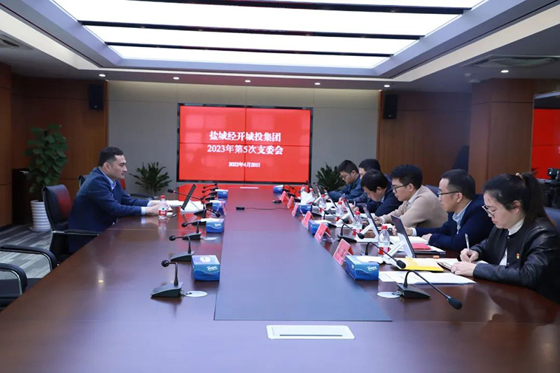 4月20日上午,鹽城經開城投集團召開2023年第5次支委會,集團黨支部書記、董事長王建旭主持會議并講話。