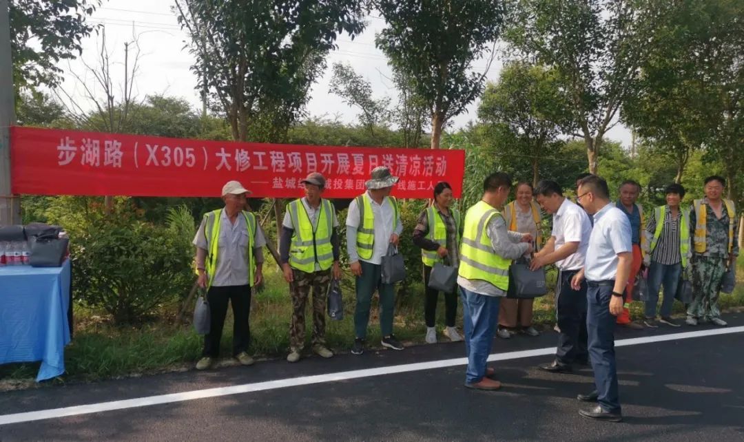 今夏氣溫節(jié)節(jié)攀升,暑氣日盛。為切實做好夏季防暑降溫工作,保障一線施工人員健康安全,8月1日上午,鹽城經(jīng)開城投集團副總經(jīng)理張志軍帶隊,依次前往鹽城經(jīng)開區(qū)環(huán)衛(wèi)基礎設施、2024年步湖路大修、2024年農(nóng)村道路臨水路段防護、2024年口袋公園等項目現(xiàn)場,開展“夏日送清涼”活動,慰問一線施工人員。